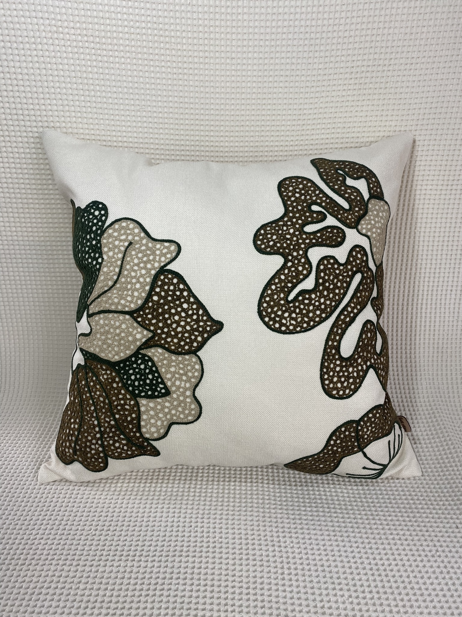 As almofadas Mariá Feitosa são criações exclusivas da designer da marca, confeccionadas com tecidos de alto padrão, bordados únicos feitos em máquinas eletrônicas manipuladas manualmente e produzidas com todo o cuidado por uma equipe formada exclusivamente por mulheres, unindo sofisticação, autenticidade e valorização do trabalho feminino.